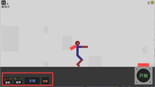 1、进入游戏后,首先点击屏幕选择角色动作造型与载具类型,不同搭配会影响后续闯关效果。