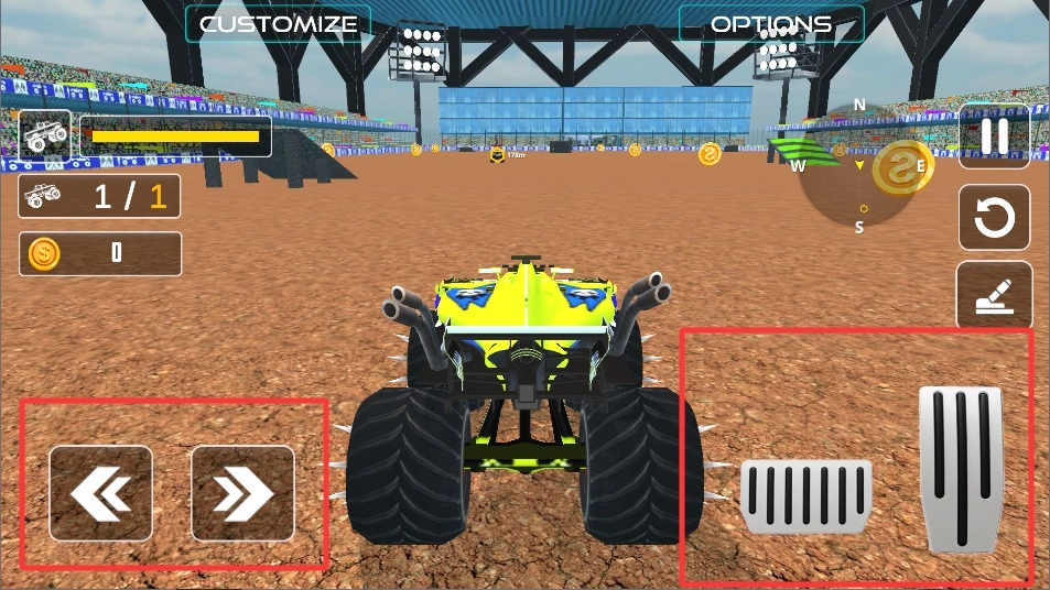 进入游戏主界面后点击PLAY按钮,系统会加载竞技场场景,倒计时结束后卡车对抗赛就正式开始了。