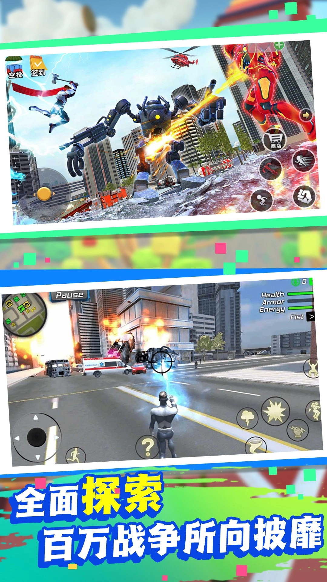 《钢铁都市守护者》是一款融合动作与冒险元素的超级英雄题材战斗游戏。在游戏中,玩家将化身机甲英雄,投身紧张刺激的动作战争场景。通过选择不同角色、驾驭威力强大的机甲,玩家需要完成各类战斗任务,肃清城市中的不法之徒,守护钢铁都市的和平稳定,同时还要抵御机械敌人的入侵威胁。