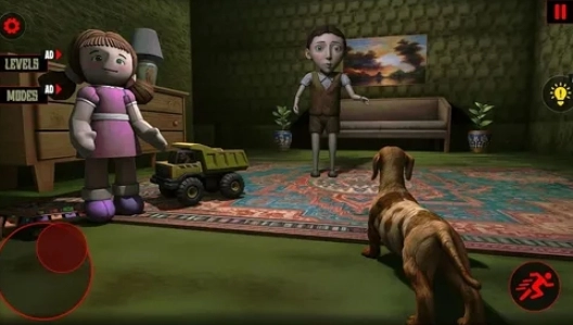 《坏娃娃故事:恐怖脸》是一款氛围惊悚、充满刺激感的角色扮演冒险游戏。玩家将踏入阴森可怖的3D鬼屋场景:夜幕笼罩下,家中寂静无声,唯有你和父母的宠物狗作伴。当大人们外出后,面带邪恶红光的诡异娃娃便悄然潜伏在阴暗角落,一场惊心动魄的恐怖追逐即将拉开序幕。