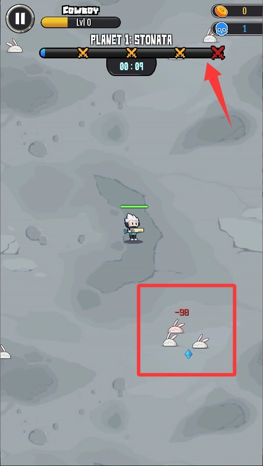 4、留意观察屏幕顶部的进度条,当击败足量怪物将其填满后就能通关,并解锁新的武器装备。