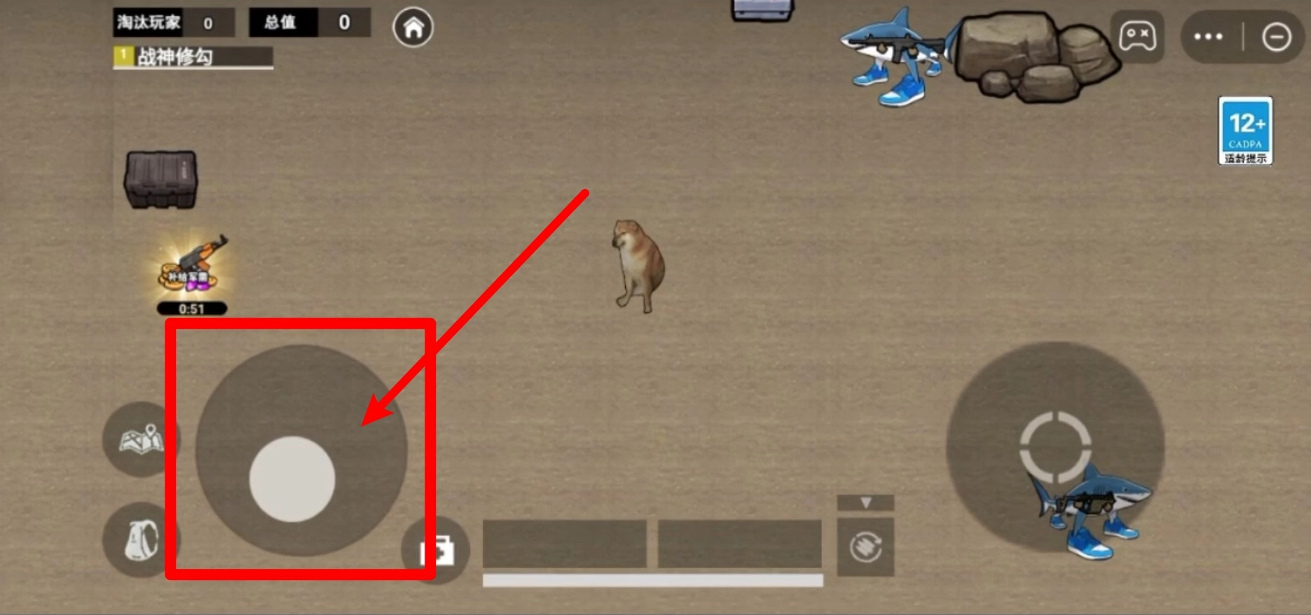 2. 左下角的虚拟摇杆是用来控制角色移动的,玩家借助它能够灵活调整位置,既可以躲开敌人的攻击,也能迅速靠近目标发起射击。