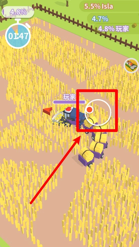 1. 驾驶收割玩法:玩家要熟练操控收割机的方向和速度,在草丛茂密的区域快速采集资源,以此提升得分效率,并借助压制对手来获取更显著的优势。