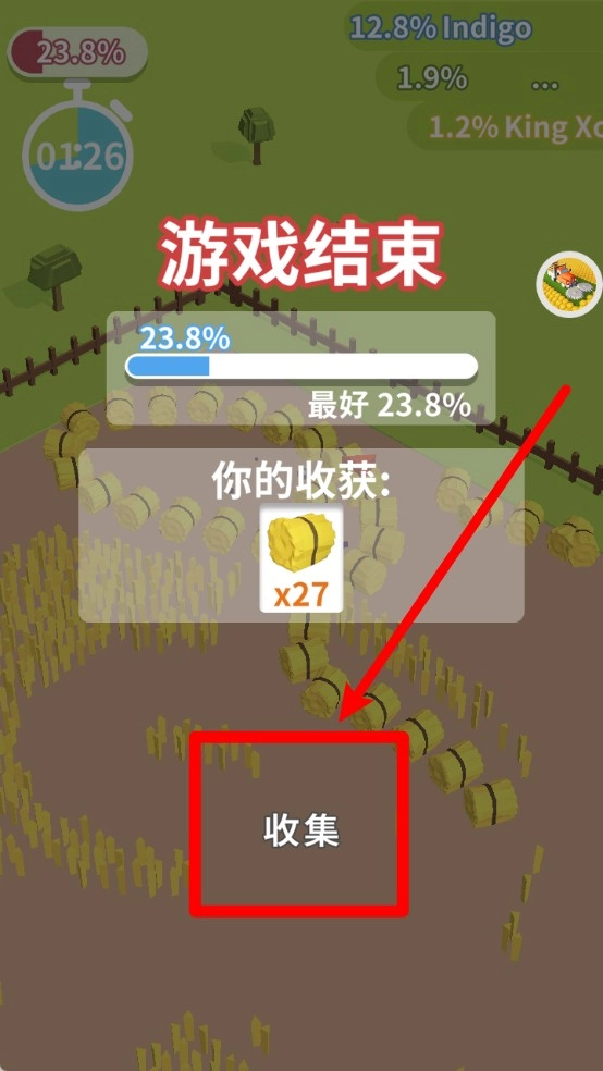 3. 成果收集:游戏结束后,点击收集按钮即可领取成果,系统会统计草捆数量,这些数量可用于升级收割机或解锁新的地图关卡。