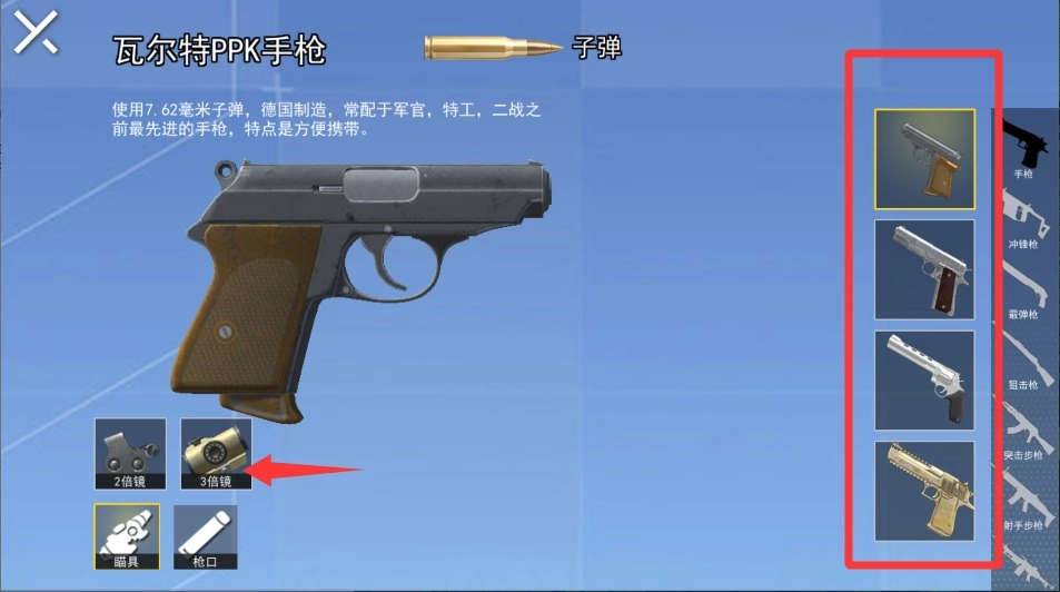 2、在装备选择界面仔细挑选初始武器,推荐使用稳定性较高的冲锋枪,方便快速掌握后坐力控制技巧。
