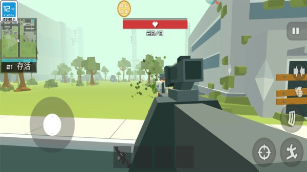 2.第一人称射击视角:进入战斗状态后切换为FPS模式,拿起像素武器瞄准射击,全靠技术与反应,刺激又爽快超解压。