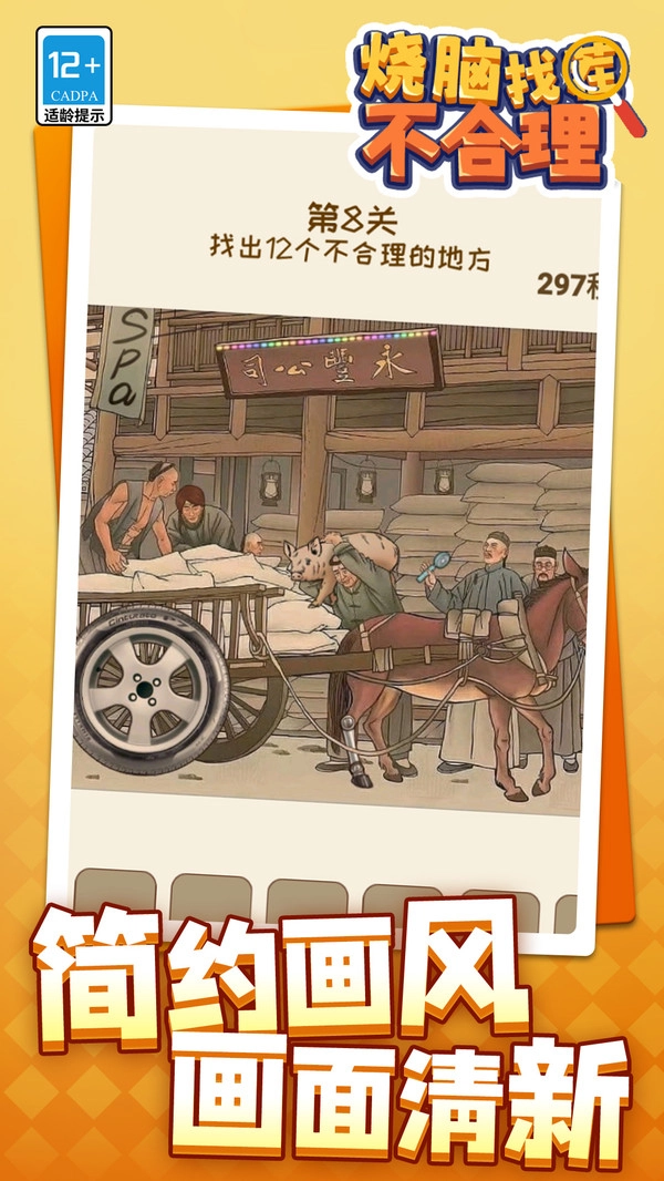 烧脑找茬不合理不是一般的找不同游戏,而是结合文化与时代感的“历史穿越找茬挑战”,玩法内容独特又有深度。