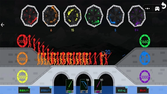 3、解锁更多类型的火柴人兵种,涵盖远程攻击、近战战士以及防御单位,还有机会召唤出强力将领,目标是顺利攻占敌方阵营。