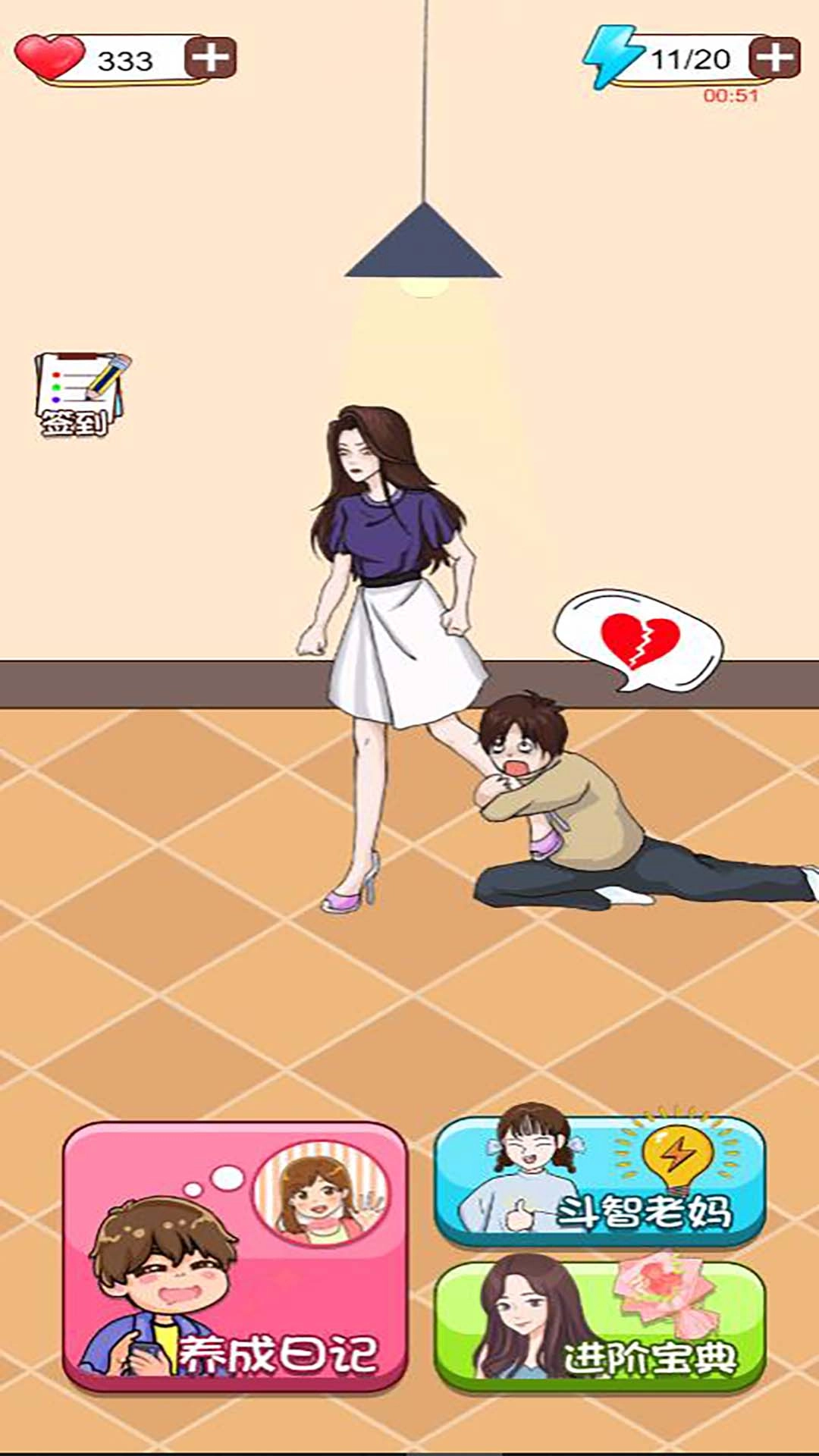 2、设置斗智老妈、养成日记等不同主题板块,丰富游戏内容,增添趣味性与话题性。