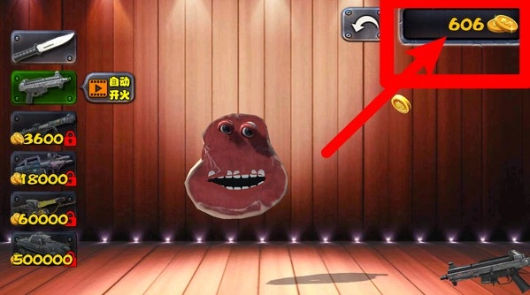 1.金币显示:屏幕右上角可查看当前金币数量,击打牛排时会不断掉落金币,玩家可通过积累金币来解锁更多道具。