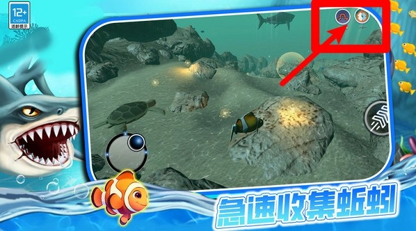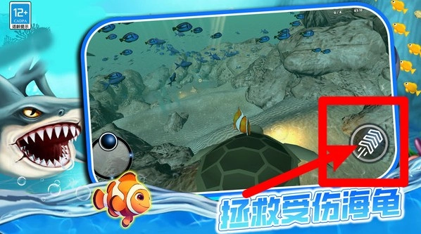 3.在深海中游玩时,需要小心躲避鲨鱼等掠食者,利用灵活的操作与快速反应,才能保证小鱼安全顺利完成任务。