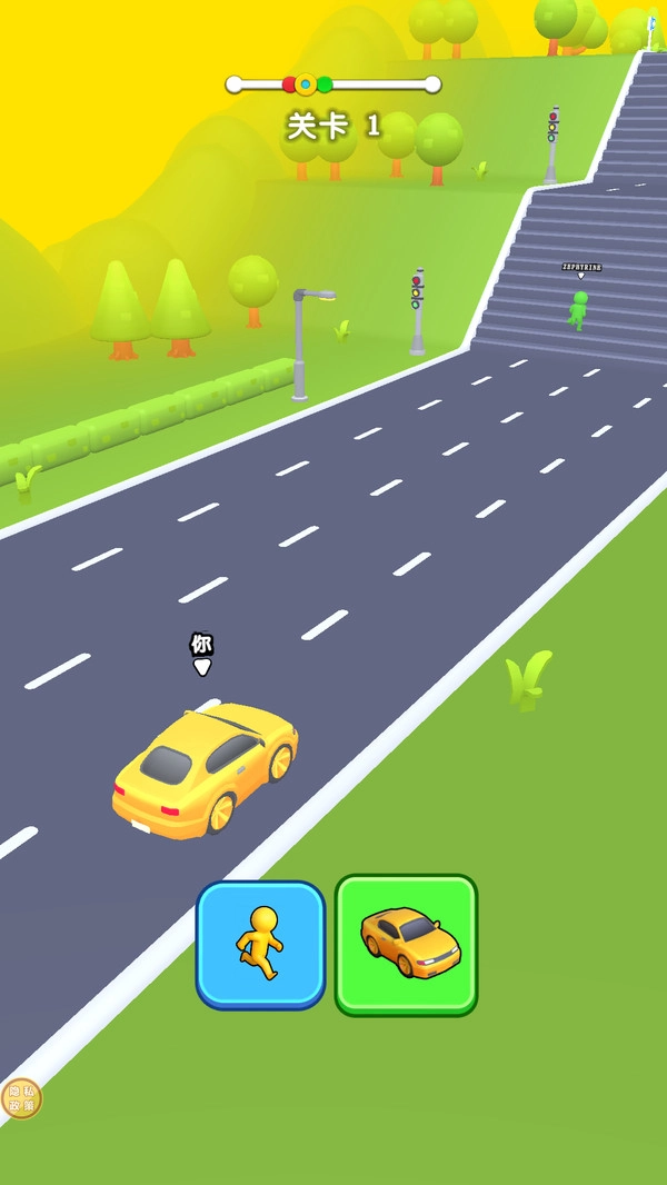 1.形态切换:赛道上玩家可以在奔跑与驾驶汽车之间自由切换,灵活调整形态才能快速应对路况并保持领先位置。