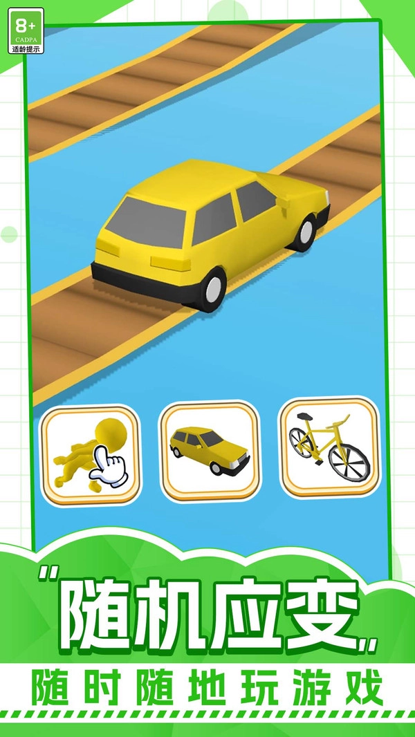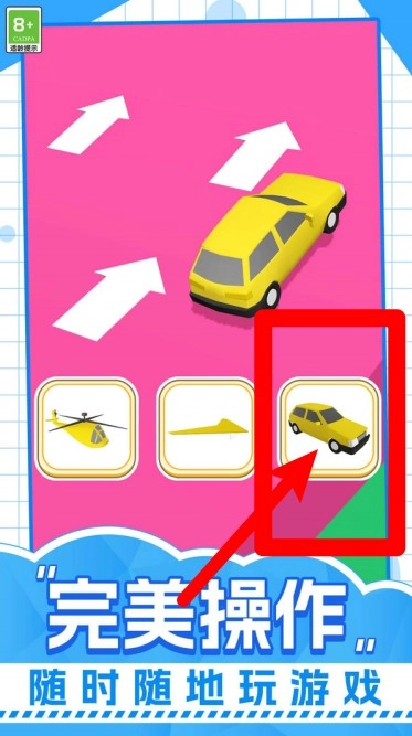 1.车辆选择:驾驶轿车沿箭头路线前进,灵活切换不同载具,体验顺畅转向和多样竞速操作。