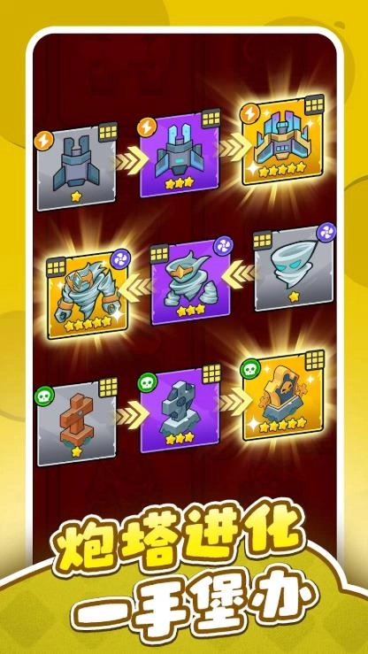 3、合成两个相同等级炮塔,进化为更高形态。