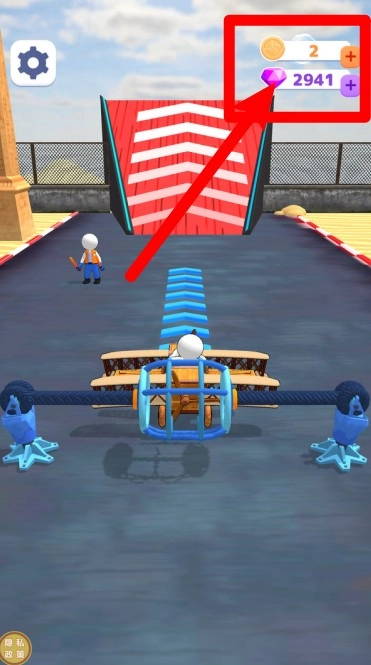 2.起点准备阶段角色驾驶飞行器蓄势待发,右上角清晰标明金币与钻石数量,方便玩家掌握当前资源存量。