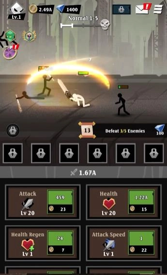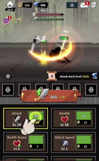 2、火柴人风格与暗影设定巧妙融合,为放置RPG类型游戏带来了全新的体验。