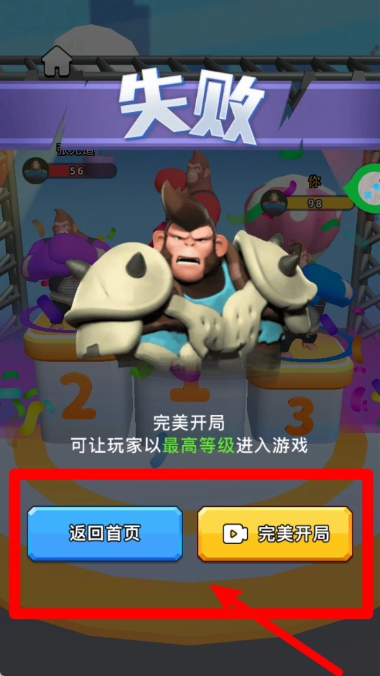 3.失败提示画面:当角色在战斗中被击倒时会显示失败界面,玩家可以选择重新开始或返回主页继续挑战。