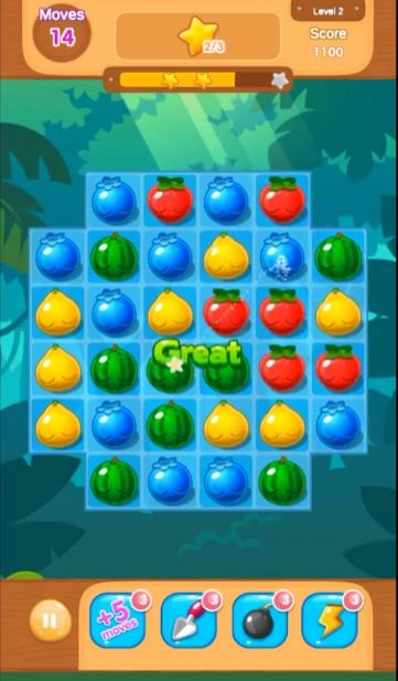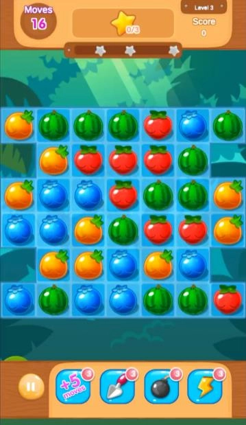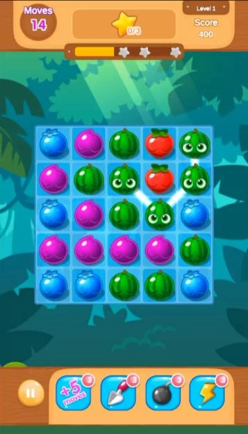 2、滑动水果,形成消除组合,积攒分数并推进进度条。