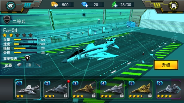 在停机圈的面板里,玩家能够查看自己的战机,还可以通过升级战机的各项属性来增强其战斗力。