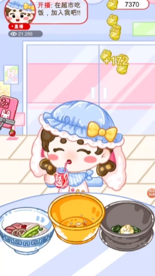 超市里有不少美食可供选购,购买这些美食需要消耗一定数量的金币,而玩家得靠完成任务来赚取金币。