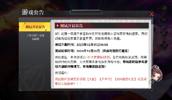 2025测试将于2025年12月15日上午十点启动,此次为不计费删档测试,仅提前完成预约的玩家可获得测试资格。