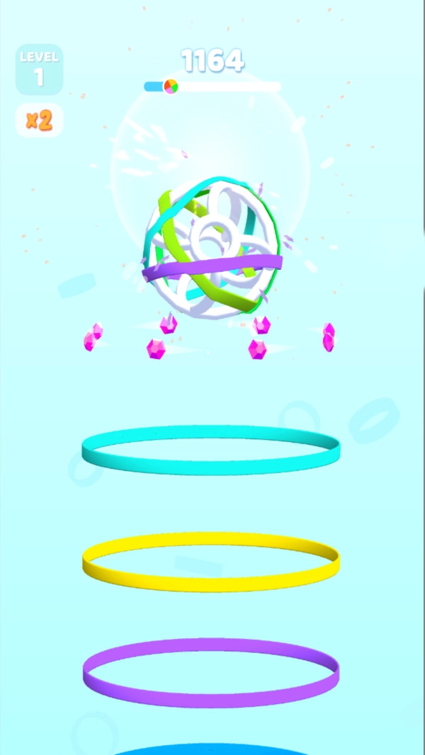 2、玩家借助皮筋完成弹射操作,若能圈住游戏界面上方的球,即可累计分数,圈中的球越多,得分就越高。