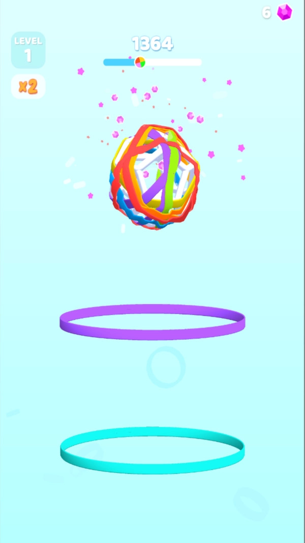 1、首先,它是一款充满挑战的游戏,每一局比拼的是玩家的分数高低,而分数的多少由皮筋的数量来决定。
