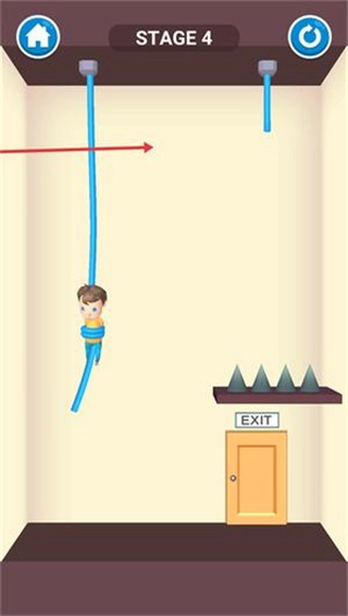 用手指在屏幕上滑动,精准切断选中的绳索,触发物理效果,让宝宝避开危险,最后平稳落地。