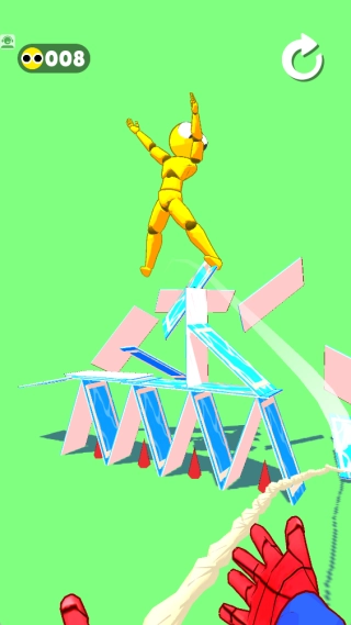 当小人被陷阱击败时,新关卡便会解锁,玩家能够借助蛛丝的特殊能力,灵活操控小人进行移动。