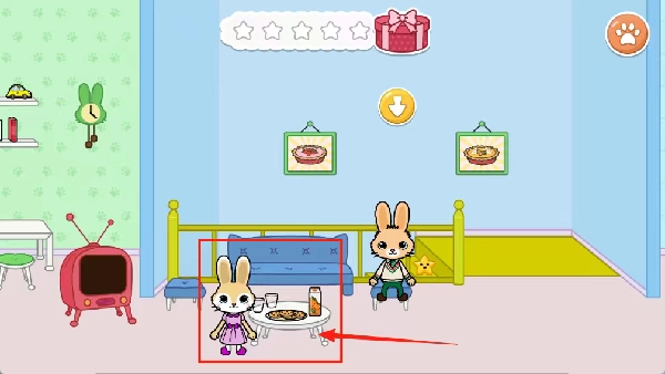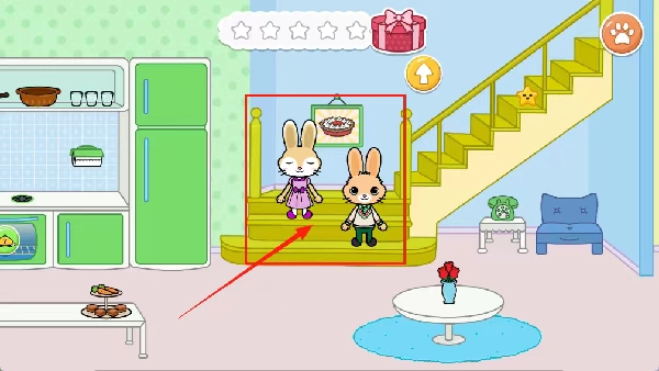 点击小兔子这类宠物,它们会缓缓走上楼梯,楼上有各类食物等着它们去品尝。