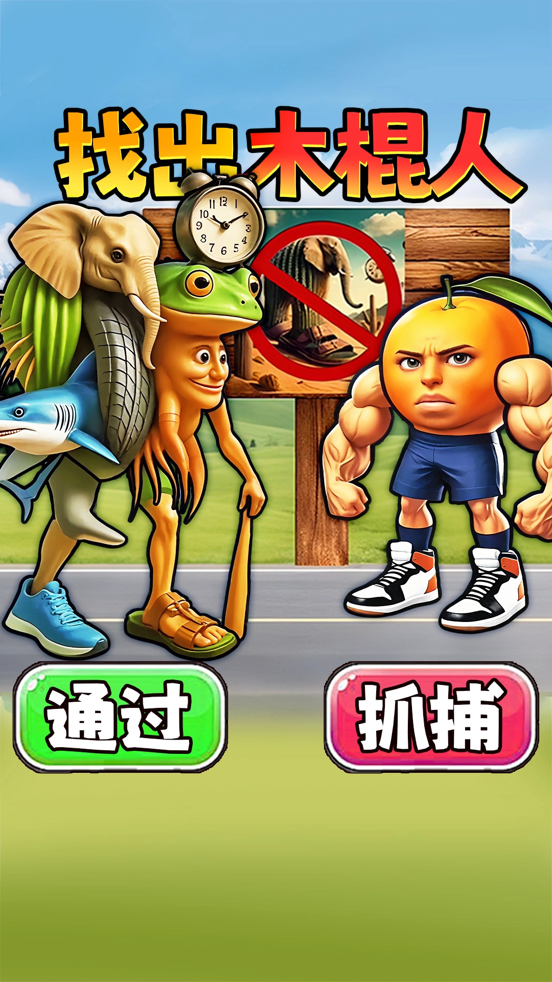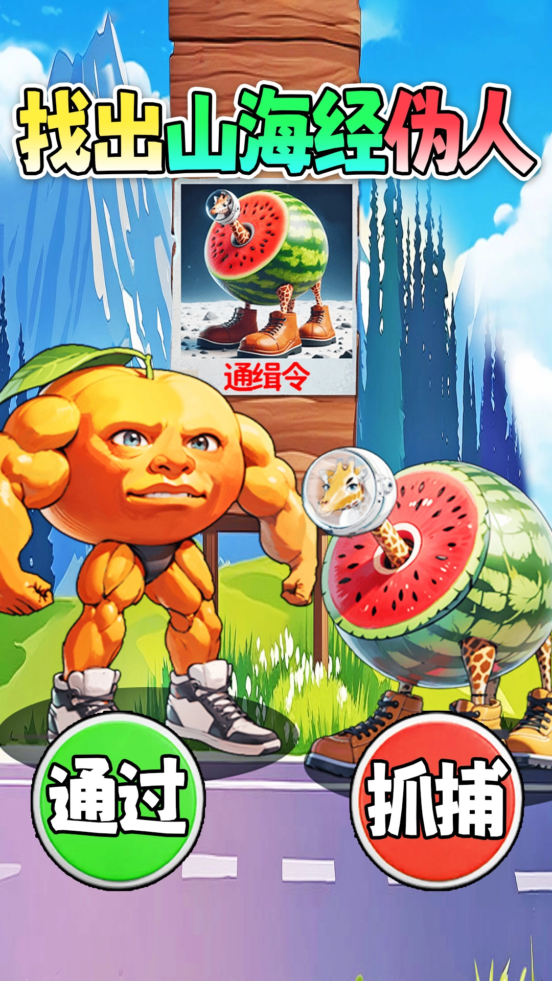 这关狠解压是一款以山海为背景的休闲解压游戏,核心玩法是AI山海经脑洞关卡,里面有肌肉橙子、奇葩组合生物这类搞怪角色。每一关都会给出通缉令,玩家需要从一堆奇特生物里找出目标,点击抓捕或通过即可,过程轻松解压,能开启一场脑洞大开的找物冒险。