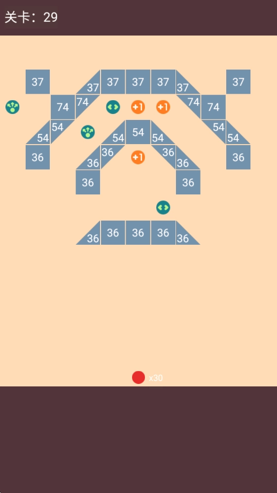 数字消除规则:每次弹球击中数字方块,方块上的数字就会减1;当数字减至0时,该方块会被消除。一发弹球能多次反弹,从而实现“一发多中”的效果。