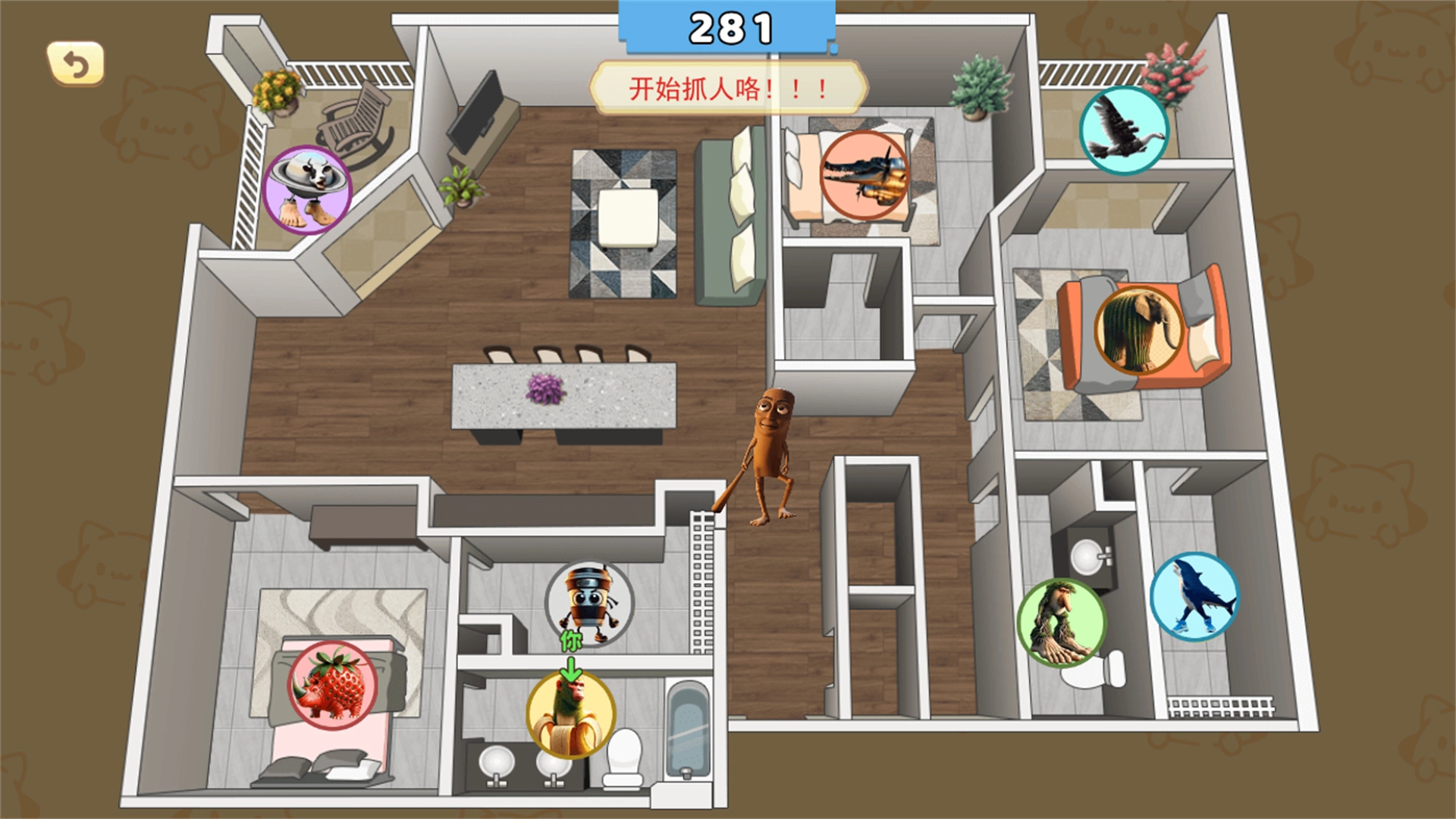 2、逃脱关卡时,要记住追捕者的移动规律,通过躲进小房间、绕着家具移动来躲避;当他靠近时就及时更换路线,不要死磕在一条路上。