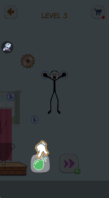 第一关难度不高,你会看到一个怒气冲冲的美女火柴人,只需点击手掌并将其拖动到指定位置,就能完成逃脱。