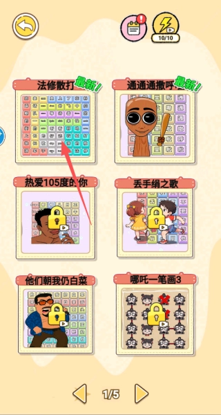 在关卡列表里,已经解锁的主题关卡能够直接进入游玩,而尚未解锁的关卡则需要先完成它的前置关卡才能开启。
