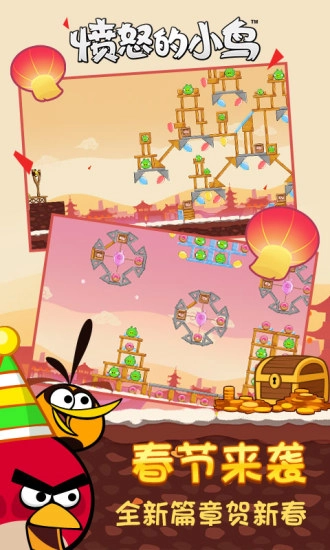 1、愤怒的小鸟》有着相当有趣的故事设定:为了报复偷走鸟蛋的肥猪们,鸟儿们将自己的身体当作武器,像炮弹般猛冲向肥猪们的堡垒。游戏采用十分卡通的2D画面,看着愤怒的红色小鸟奋不顾身地朝绿色肥猪的堡垒砸去,那种奇妙的感觉确实让人觉得十分欢乐。