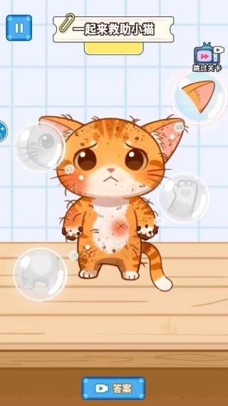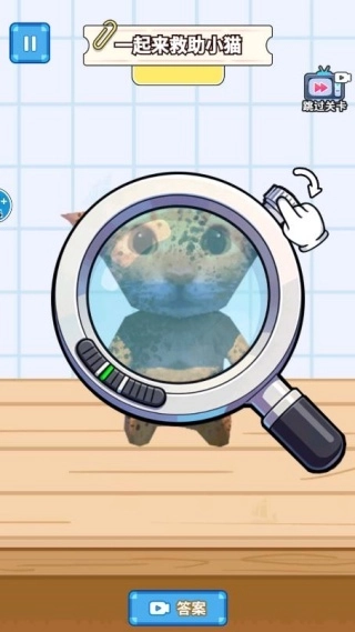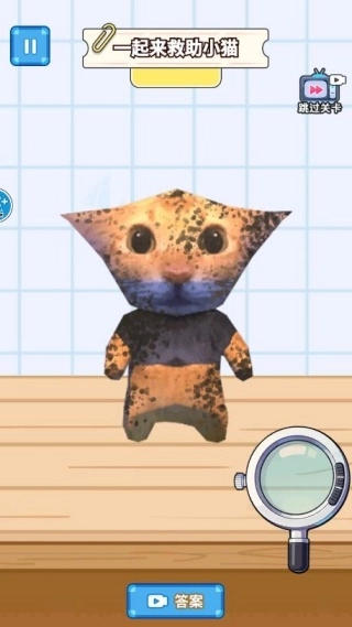 点击右侧的放大镜能扩大视野范围,再结合旋转按键来调整角度,通过精准的清洁操作,让小猫可以完全摆脱身上的污垢。
