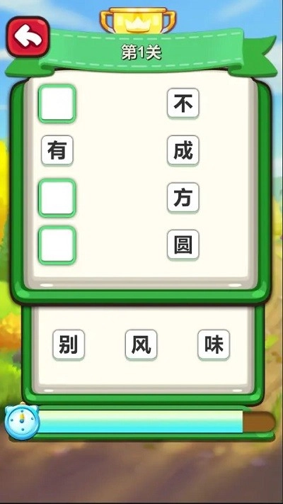 1. 仔细观察题目空缺处的上下文提示信息,从底部的字库中挑选出最契合语境的汉字,将其拖拽至填空的位置。