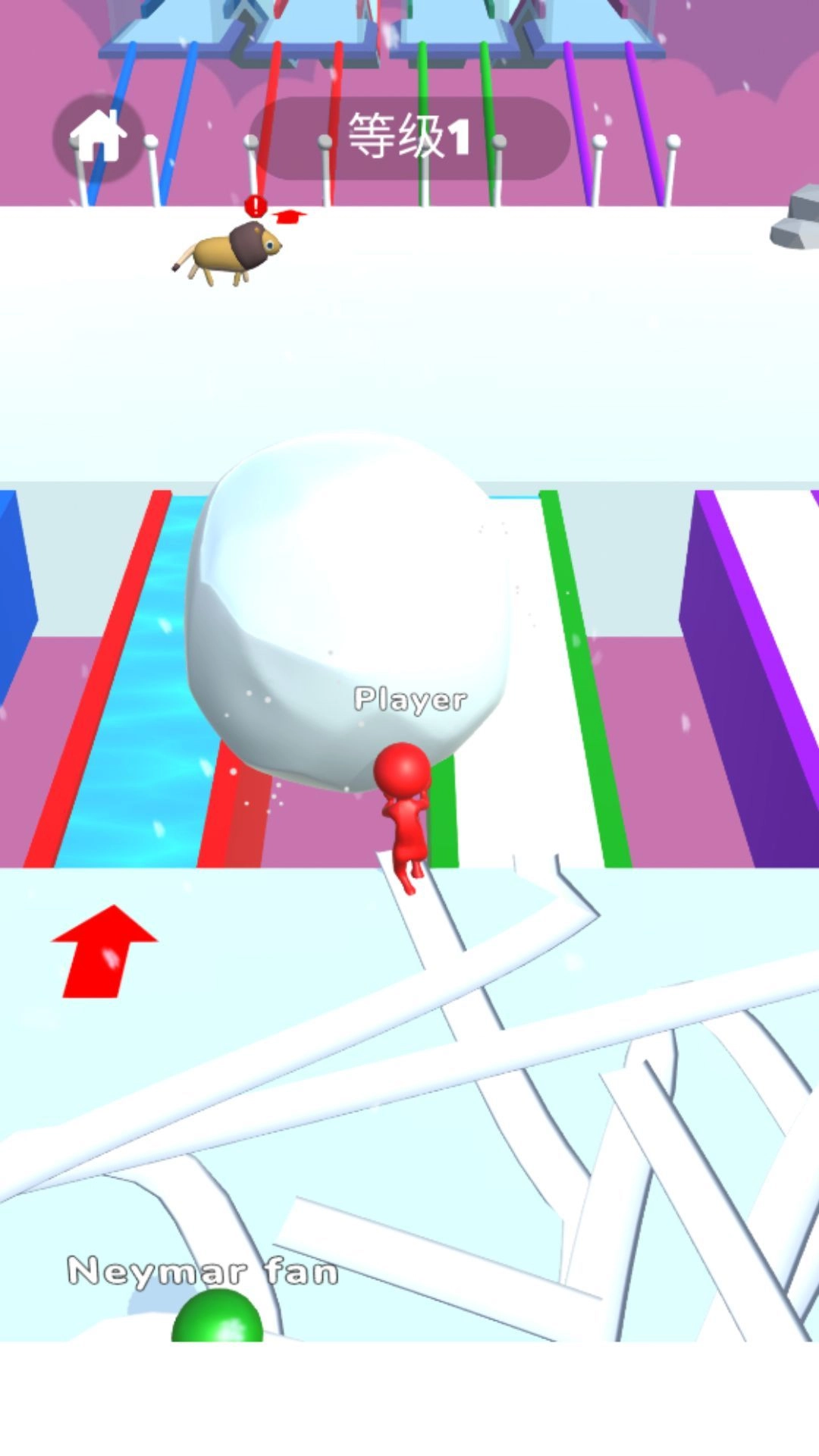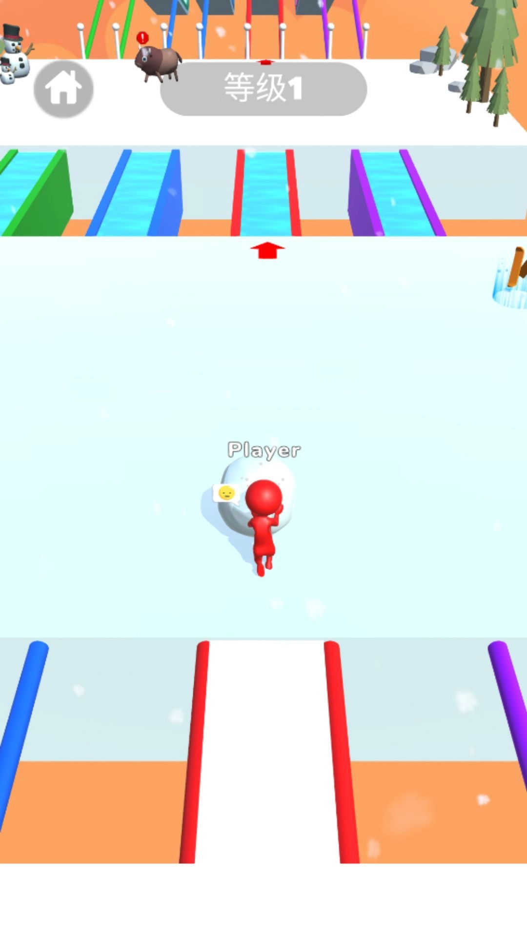 1、玩家只需通过简单的滑动屏幕,即可控制角色在雪地中滚动雪球,轻松收集雪花,让雪球越滚越大。