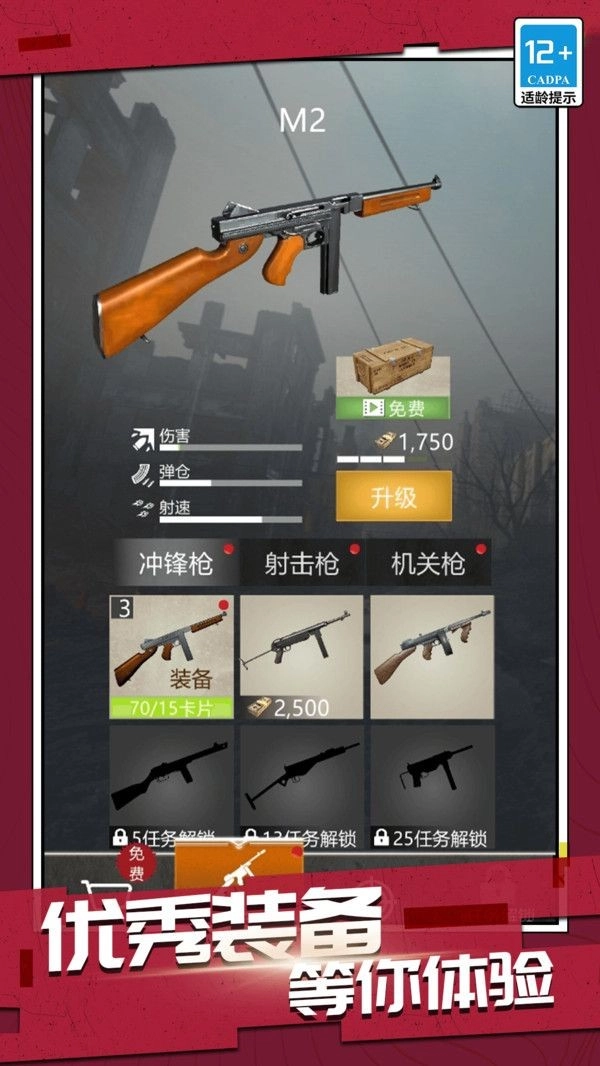 3、通过完成关卡和挑战,玩家可以解锁新的武器装备,提升自己的作战能力。丰富的武器选择和装备升级系统。