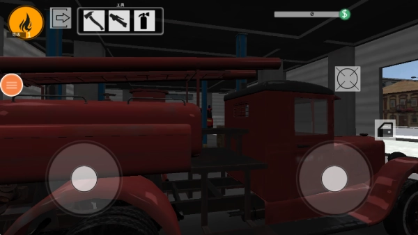 接下来玩家需要操控主角靠近车辆,点击右侧的车门图标就能上车驾驶消防车执行任务。