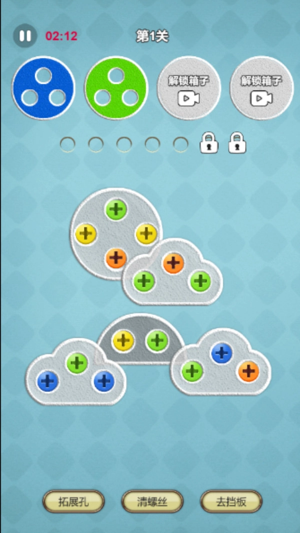 2、每个关卡都设有时间限制,需要高效进行操作,优先拆解容易处理的螺丝,避免时间耗尽,成功通关后即可解锁新的关卡。