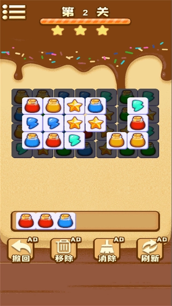 1、消除瞬间会触发连锁爆炸、彩虹激光等华丽特效,再配上沉浸式的音效,每一局游戏都像一场精彩的烟花秀般绚烂夺目;