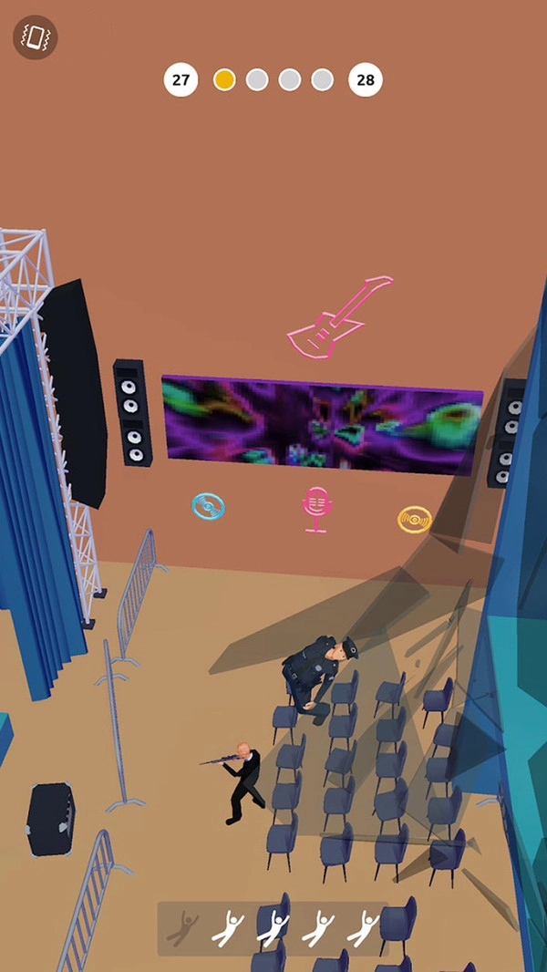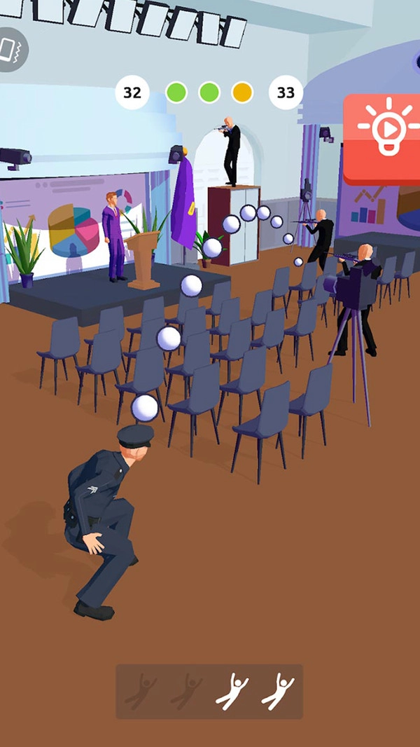 1、包含舞台、会议场所等各类场景,像图片里呈现的室内场地一样,能增加游戏的复杂性与新鲜感。