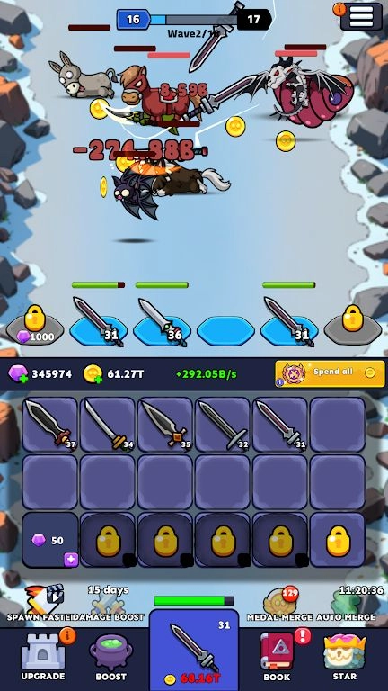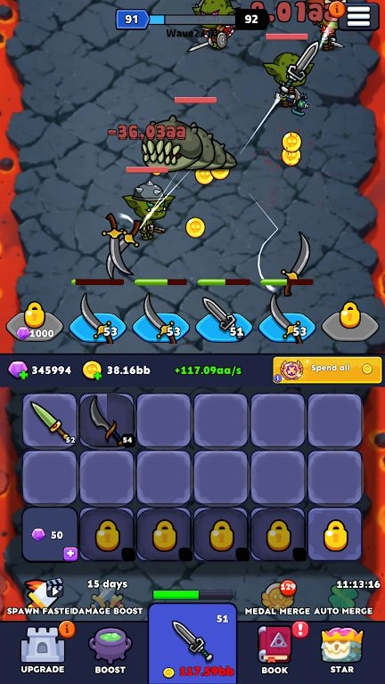 2. 选用简洁明快的画风,战斗特效流畅自然,武器合并与攻击动画的表现力突出,为玩家带来直观的视觉冲击和畅快的战斗体验。