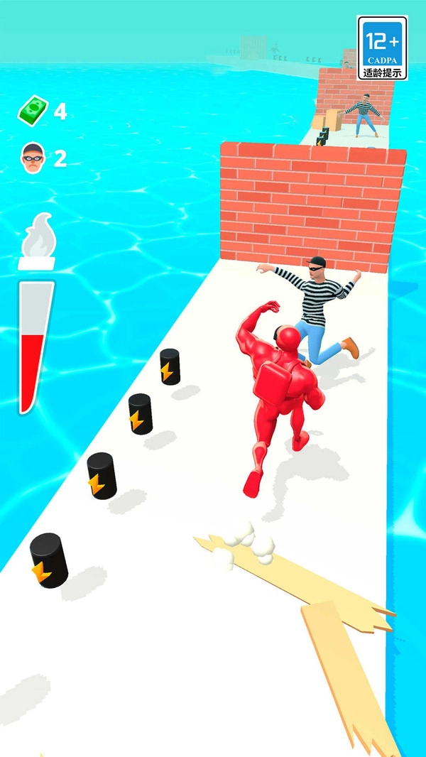 3、碰到敌人时,按下攻击键出拳,把他们击飞后继续向前奔跑,不要被拦住去路。