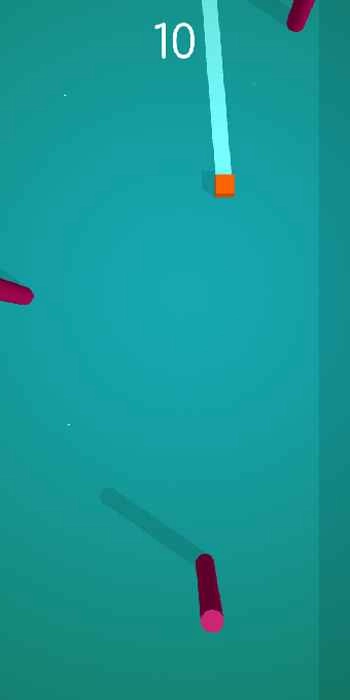 这是一款主打反应力的休闲游戏,玩家需要操控一块橙色方块顺着垂直的墙壁快速下落,并且要躲开随机生成的障碍圆柱。