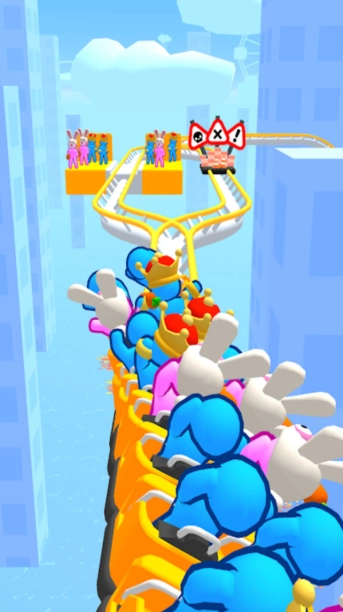 通过左右滑动控制列车转向,长按实现刹车减速,在千钧一发之际避开突然出现的断轨。 合理使用有限加速次数,在直线路段冲刺,为危险弯道预留调整时间。 收集散落乘客增加车厢数量,但要小心超长列车带来的操作难度指数级上升。