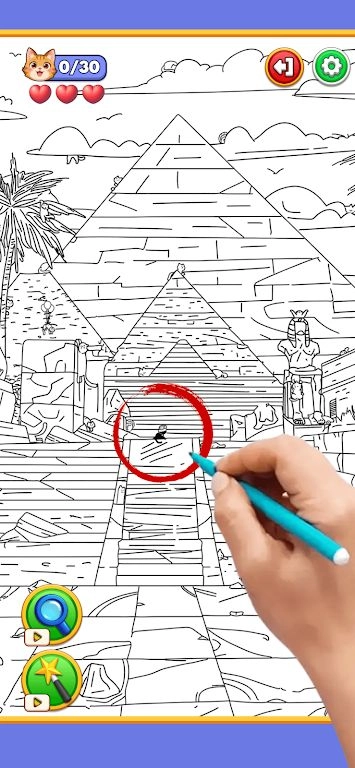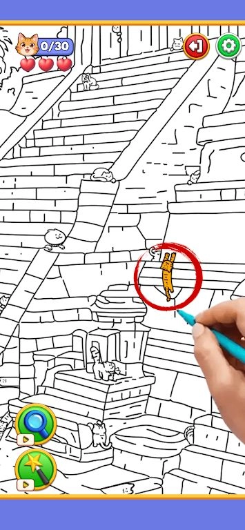 1. 用双指放大画面可以更清晰地查看复杂区域,不少猫咪会简化成简笔画线条的一部分,需要凑近屏幕仔细观察。