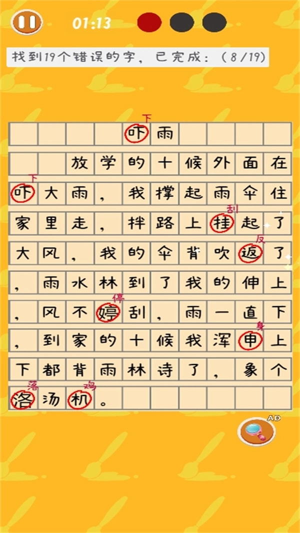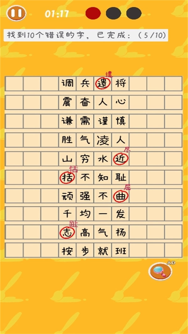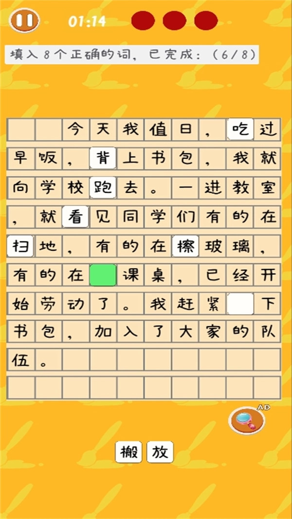 2、在限定时间内完成任务,把所有错误找出来、将词语填写正确等,只要进度达到要求就能顺利通关,还能获得奖励。